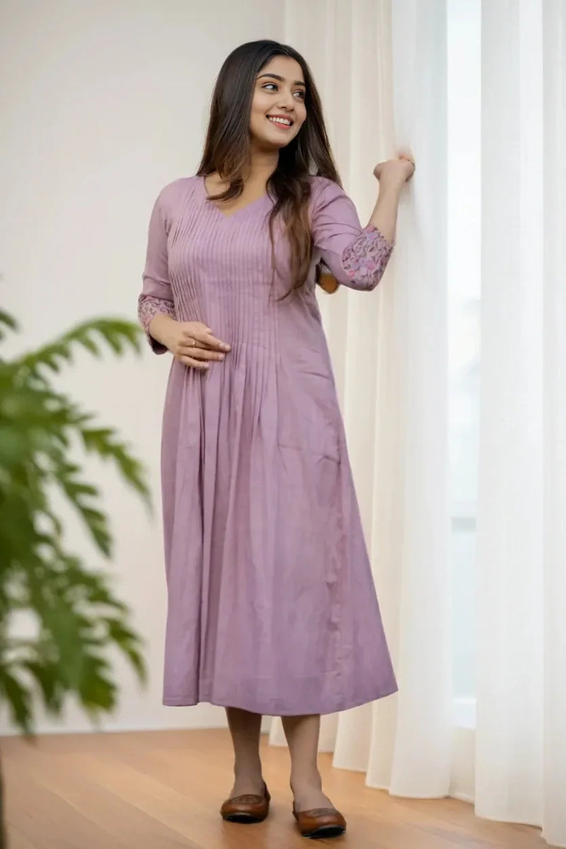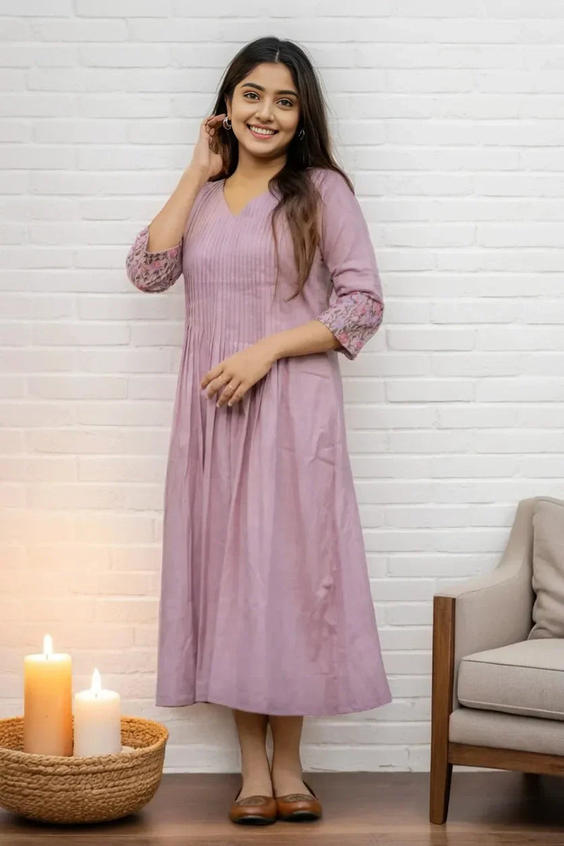 Introducing our Pintex Embroidered Midi Dress - the perfect combination of intricate pintex work and delicate embroidery on the sleeves. Made with pure cotton, this midi dress offers both style and comfort. Elevate your wardrobe with this stunning piece.