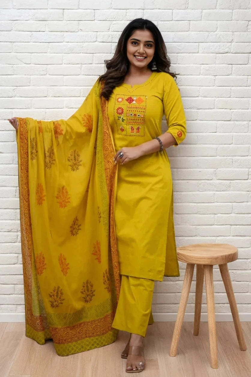 Elevate your ethnic wardrobe with this Blue Embroidered Kurta Set, featuring intricate embroidery that adds refined elegance. The straight-cut kurta offers a flattering silhouette, paired perfectly with a printed dupatta that brings subtle contrast and completes the look. Ideal for festive occasions or casual gatherings, this set combines traditional craftsmanship with contemporary style for a versatile and graceful outfit.