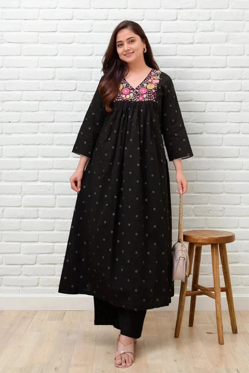 Elevate your ethnic wardrobe with this Red Floral Embroidered Angrakha Anarkali Kurta paired with matching Palazzo pants. Crafted with intricate floral embroidery, the Angrakha design offers a graceful wrap silhouette that complements various body types. The lightweight fabric ensures comfort while the palazzo adds a contemporary touch, making it suitable for festive occasions and formal gatherings. This ensemble balances traditional aesthetics with modern style for an effortlessly elegant look.