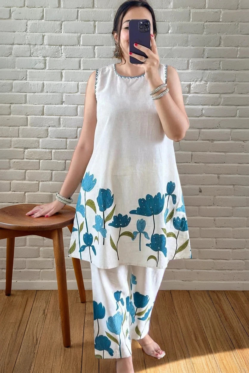 This Pink Floral Printed Co-Ord Set features intricate work that enhances the vibrant floral print, offering a stylish and coordinated look. Designed to knee length, it balances comfort with elegance, making it perfect for casual outings or semi-formal occasions. The breathable fabric ensures ease of wear, while the detailed craftsmanship adds a refined touch to your wardrobe.
