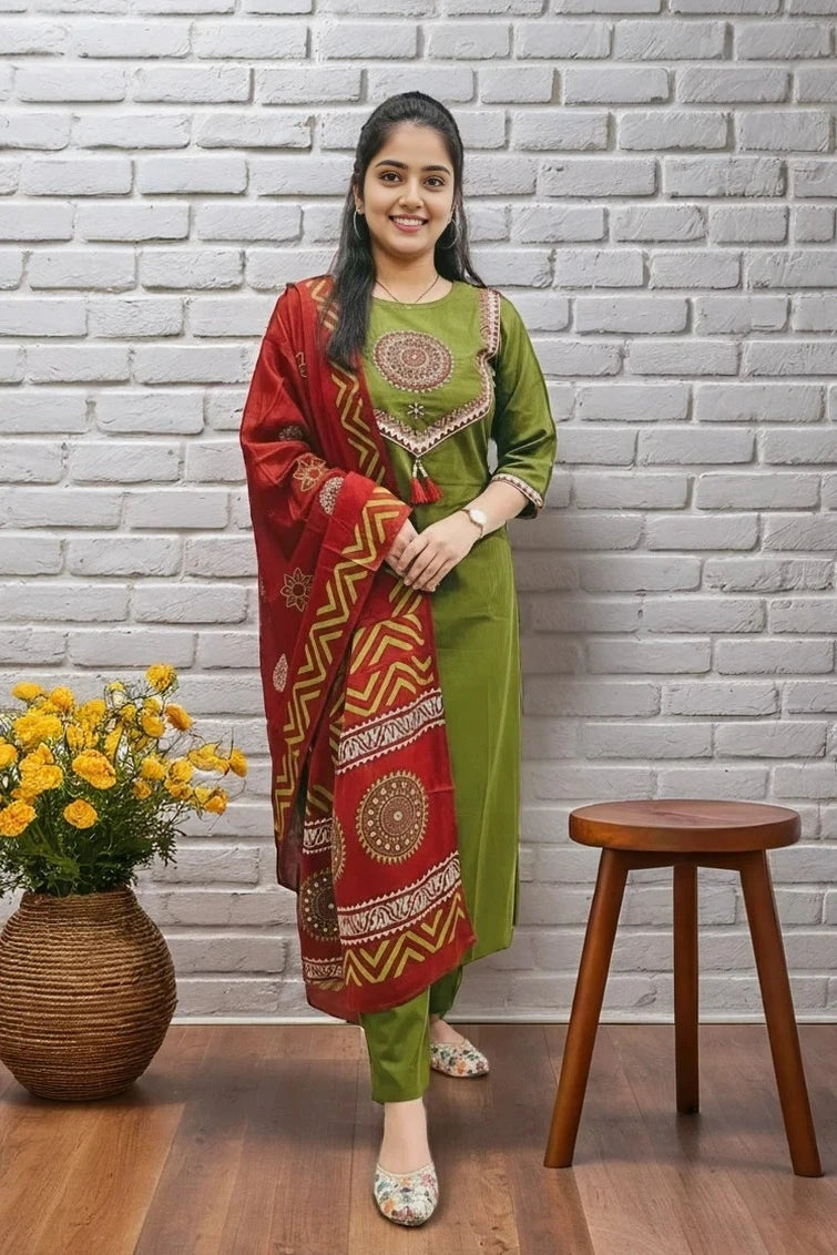 Elevate your wardrobe with the Green Adda Work Kurta Set, featuring intricate adda embroidery that adds subtle elegance to the design. This set includes a comfortable kurta and a matching dupatta, crafted for both style and ease of wear. Ideal for festive occasions or casual gatherings, it combines traditional craftsmanship with refined detailing for a sophisticated look.