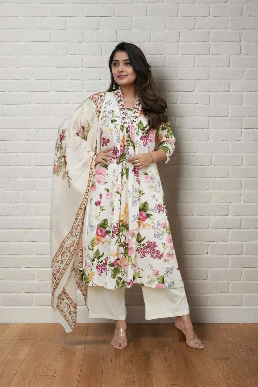 Experience understated elegance with this white kurta and pant collection. Woven from breathable cotton, the set showcases expertly executed embroidered patterns that reflect traditional artistry. The V-neckline offers a contemporary touch while maintaining classic proportions, and ornamental tassel work provides authentic detailing. This ensemble balances comfort with refined aesthetics, making it suitable for cultural celebrations, formal occasions, and special events. The natural fiber composition ensures optimal comfort in warm weather, while the thoughtful design elements elevate it beyond everyday wear.