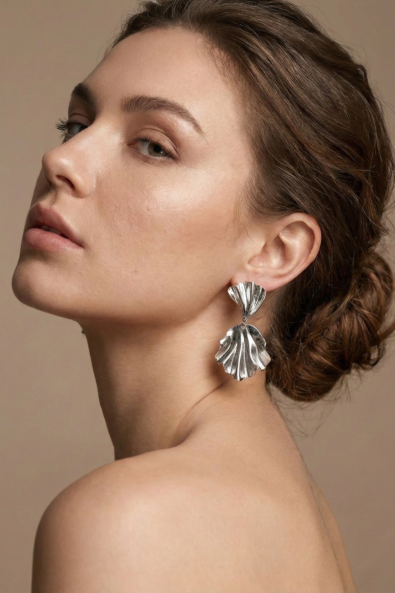 Modern Metallic Shell Drop Earrings capture organic elegance through nature-inspired design rendered in contemporary metallic finishes. These pieces feature shell-shaped forms that catch light beautifully, creating subtle shimmer and dimension. The drop silhouette provides graceful movement while the metallic treatment elevates the natural aesthetic into sophisticated territory. Versatile enough for layered styling or worn as standalone statement pieces, they bridge the gap between bohemian sensibility and modern minimalism. Perfect for discerning wearers seeking jewelry that honors natural forms while maintaining a polished, refined appearance.